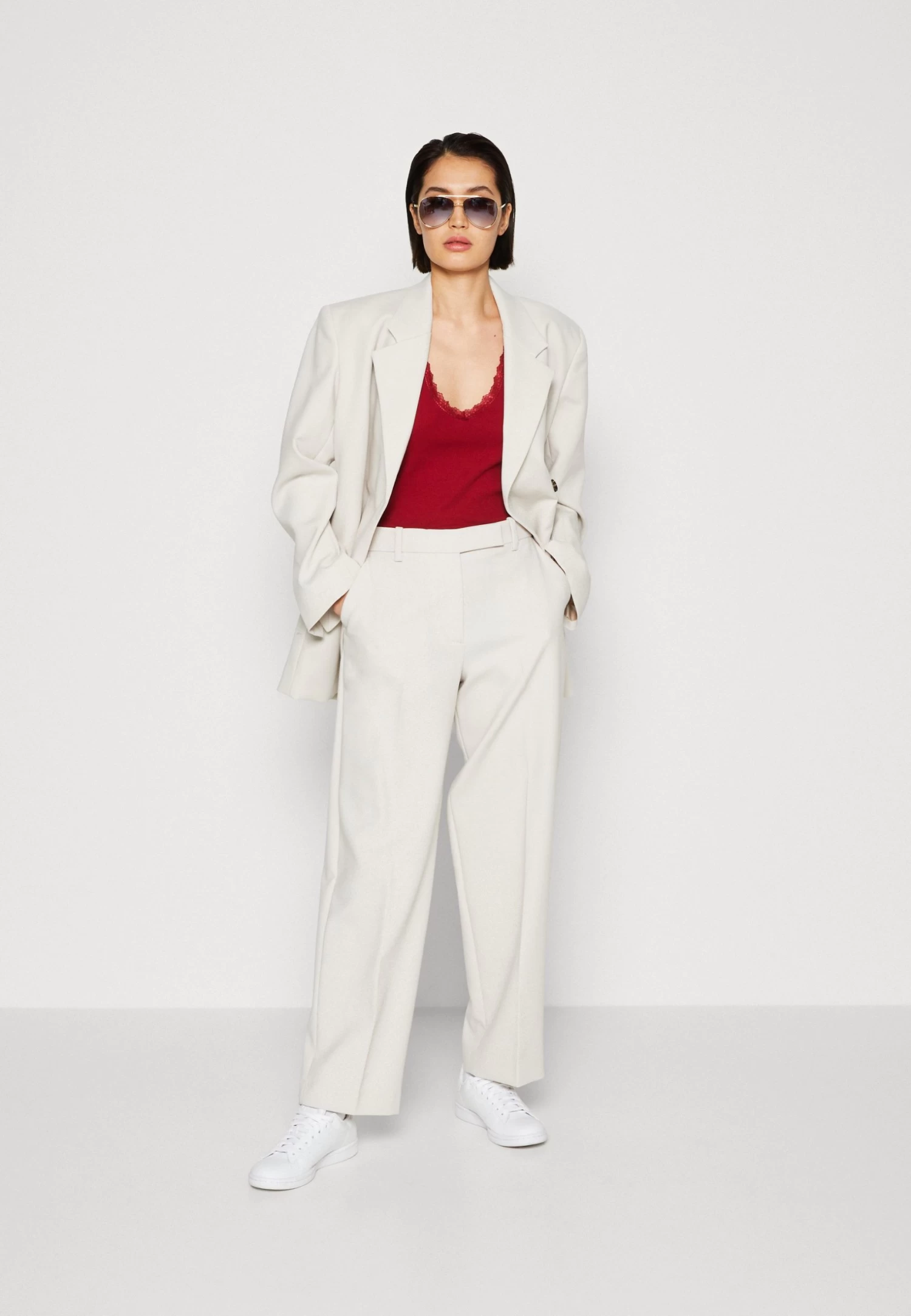 | Neckline | Low-cut v-neck |